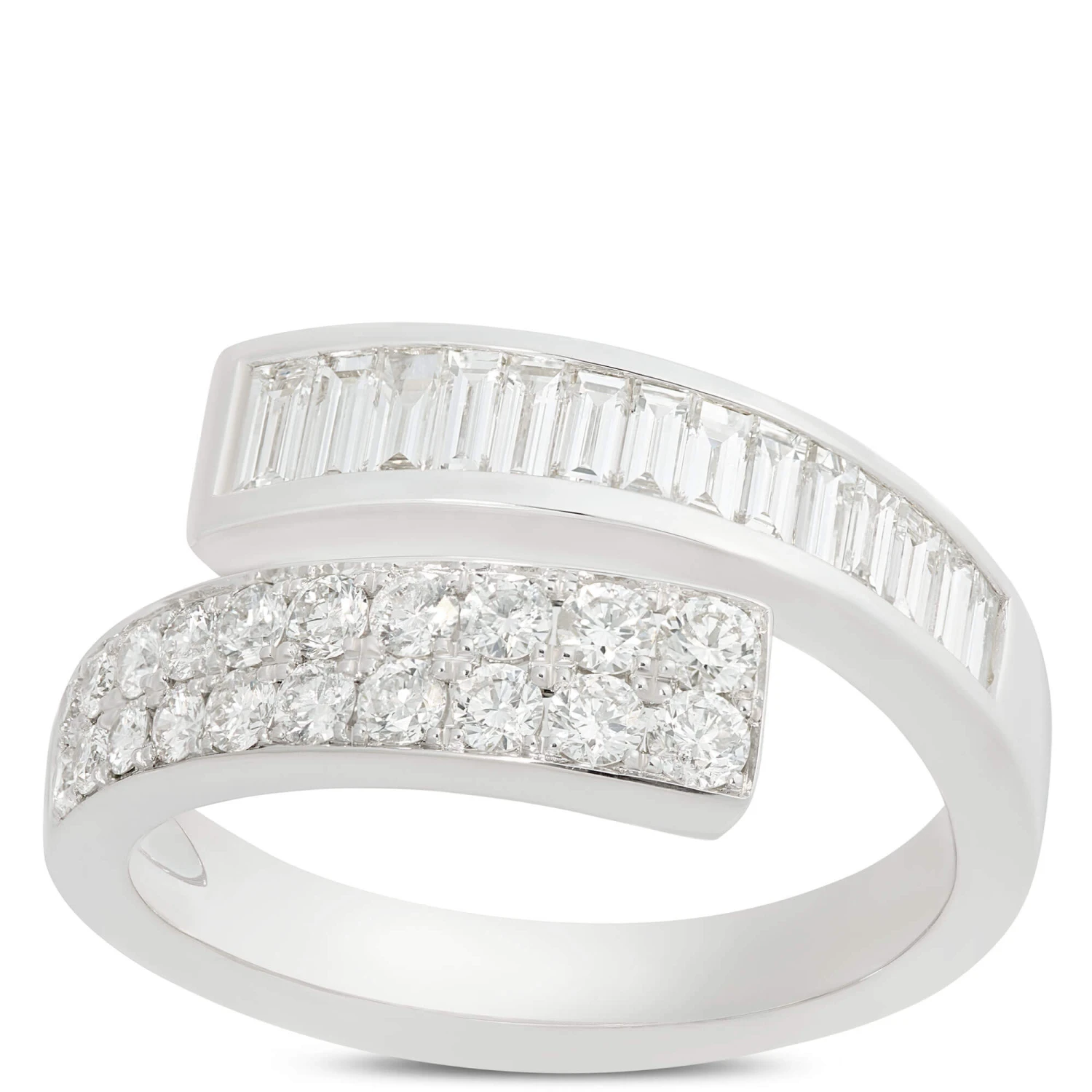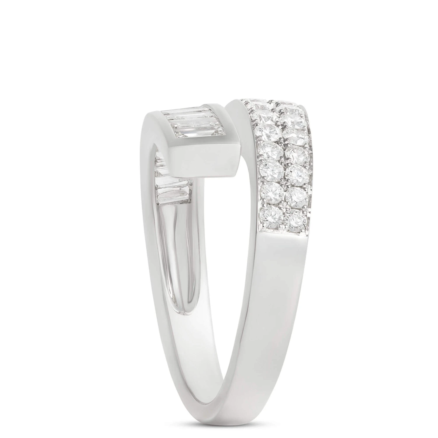 Nothing sparkles quite like the pairing of diamonds and 14k white gold. This gorgeous bypass ring captures the icy elegance and clarity of baguette diamonds on one row with the light-catching glow of round diamonds on the other. The bypass wraps around your finger beautifully to create a stacked look that’s worthy of any occasion. When you choose Ben Bridge, you don’t have to compromise when it comes to responsibly-sourced natural diamonds crafted and curated to celebrate all of life’s precious moments.