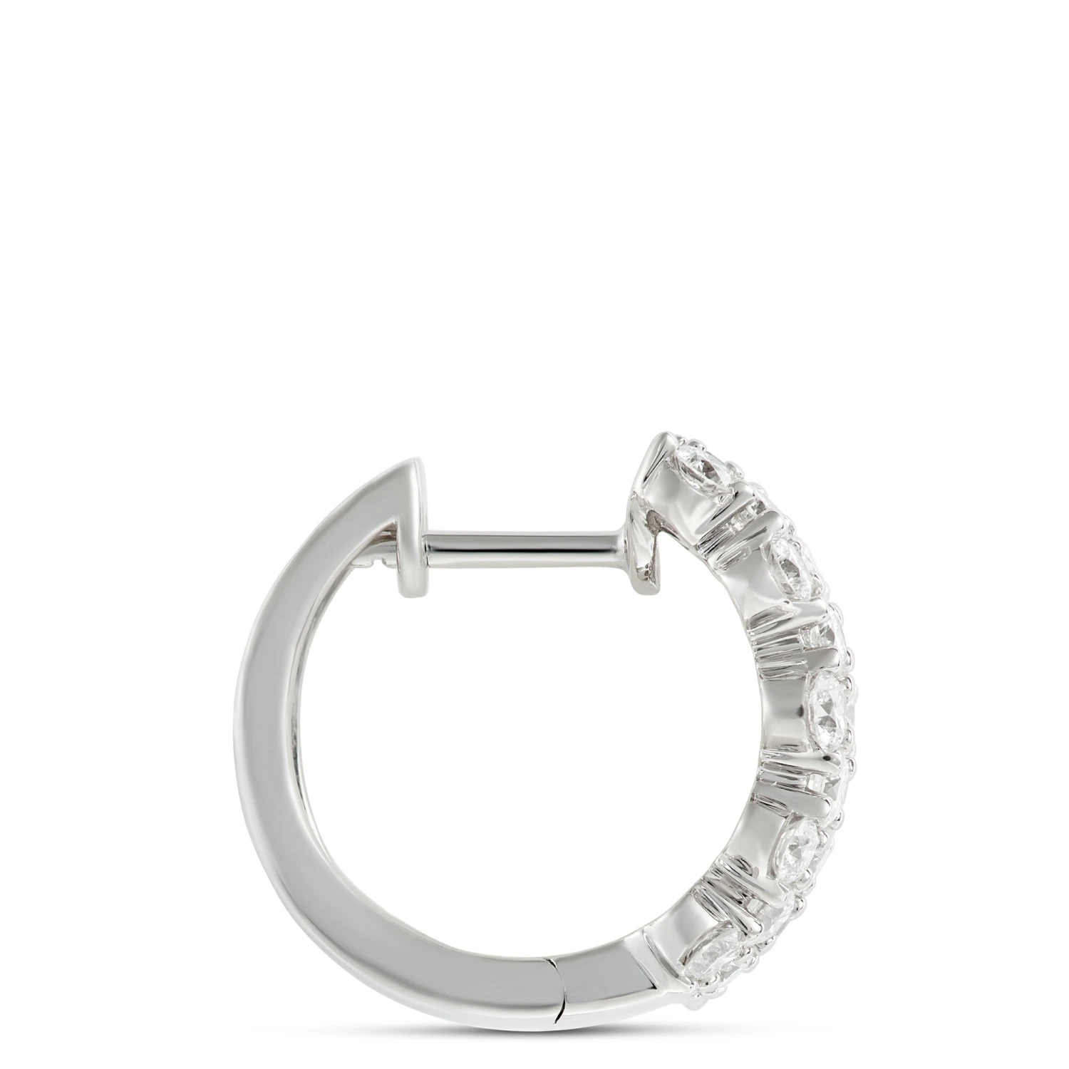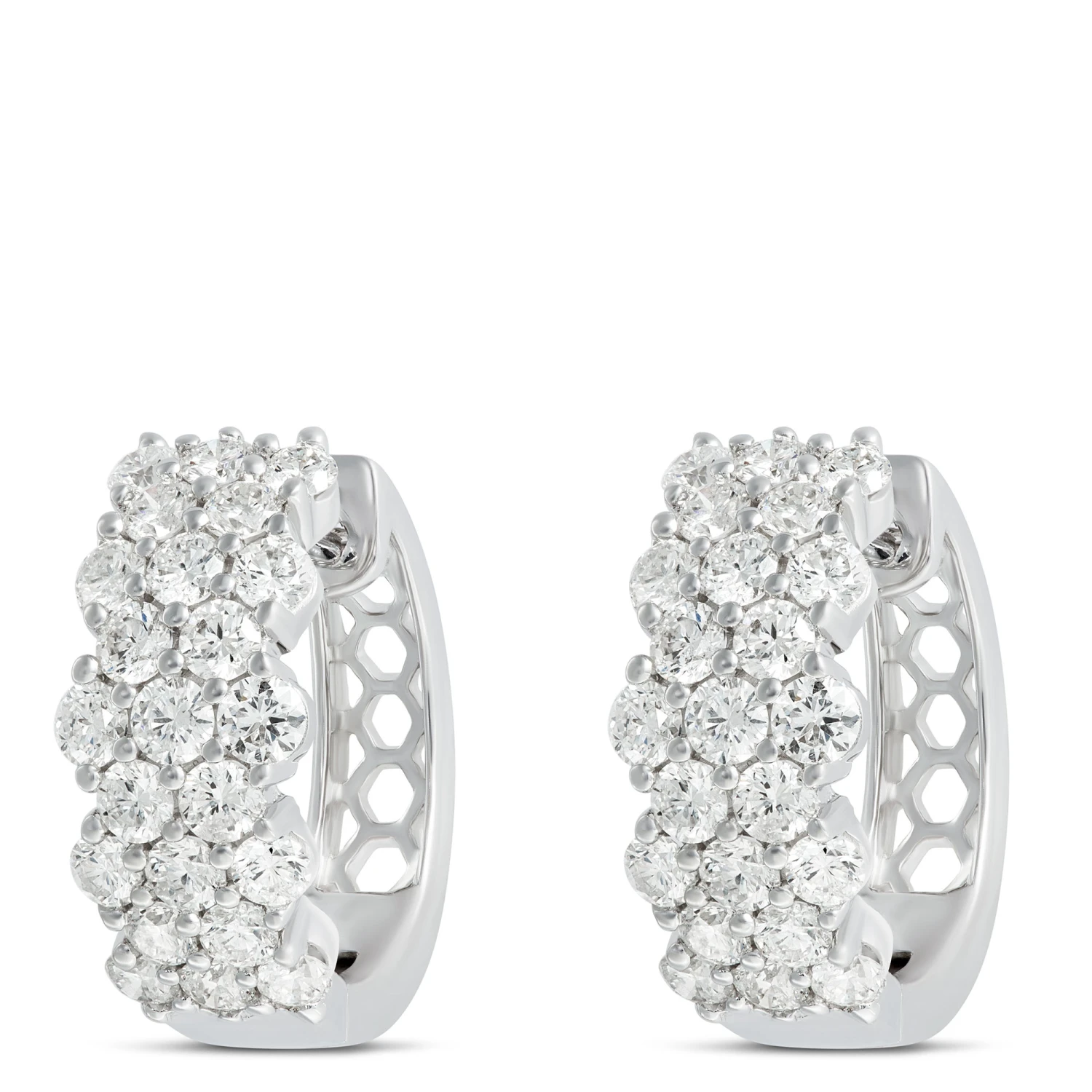 Unwavering elegance and impact are on gorgeous display with a pair of hoop earrings showcasing 1.46 carat weight of sparkling round cut diamonds. The 14k white gold setting is the perfect complement to the exceptional gemstones that capture the light beautifully. We know you’ll be proud to wear and love these hoops made with shimmering white gold and responsibly sourced diamonds.