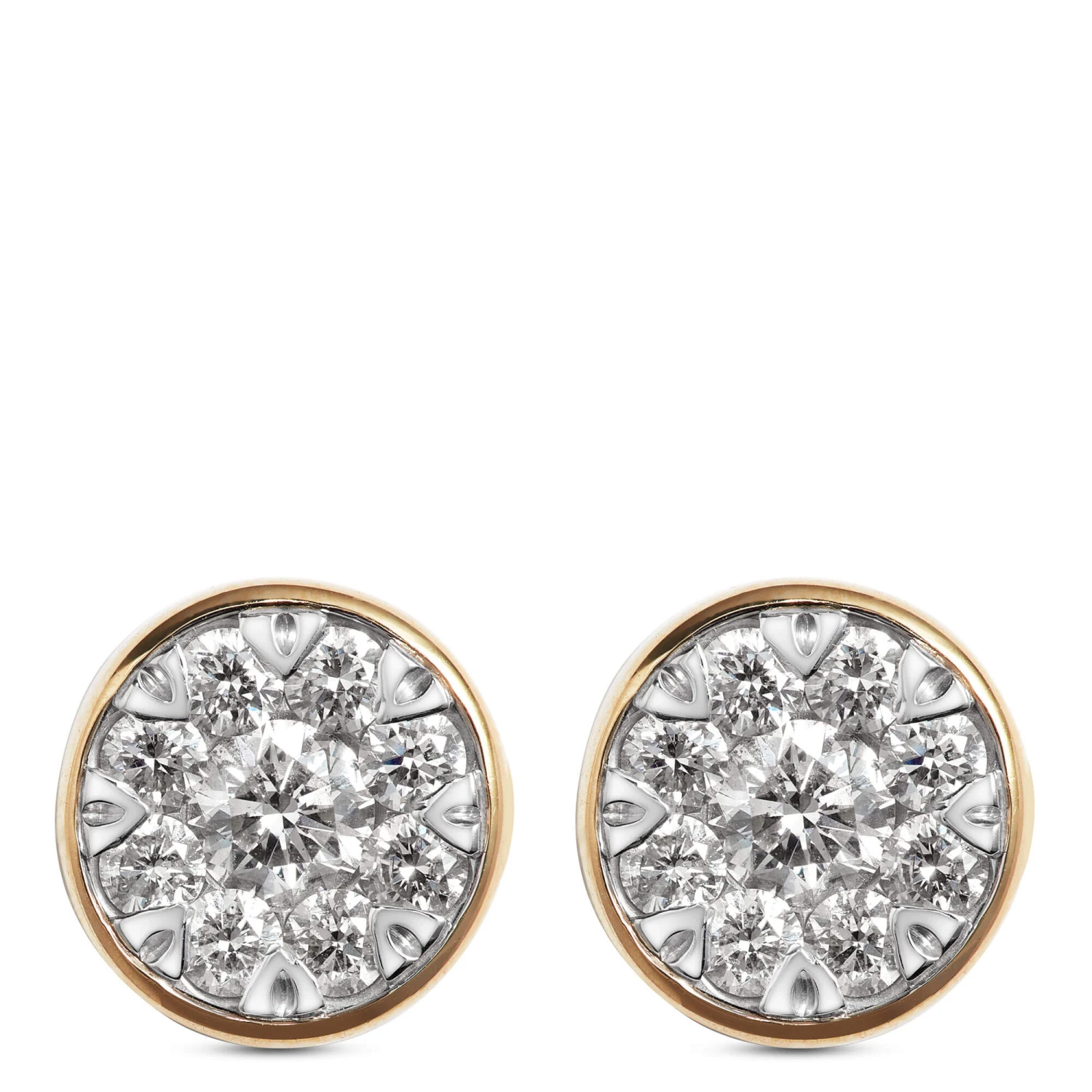 These light-catching diamond studs are perfect for those times when nothing short of immense sparkle will do. Set on a classically beautiful 14k white gold cluster plate, followed by 14K yellow gold casing, these diamond studs showcase .95 carat weight of natural diamonds for a versatile and timeless appeal that shines with luxury. A good pair of studs is a must-have for any jewelry wardrobe and these are crafted to wear and love for a lifetime.