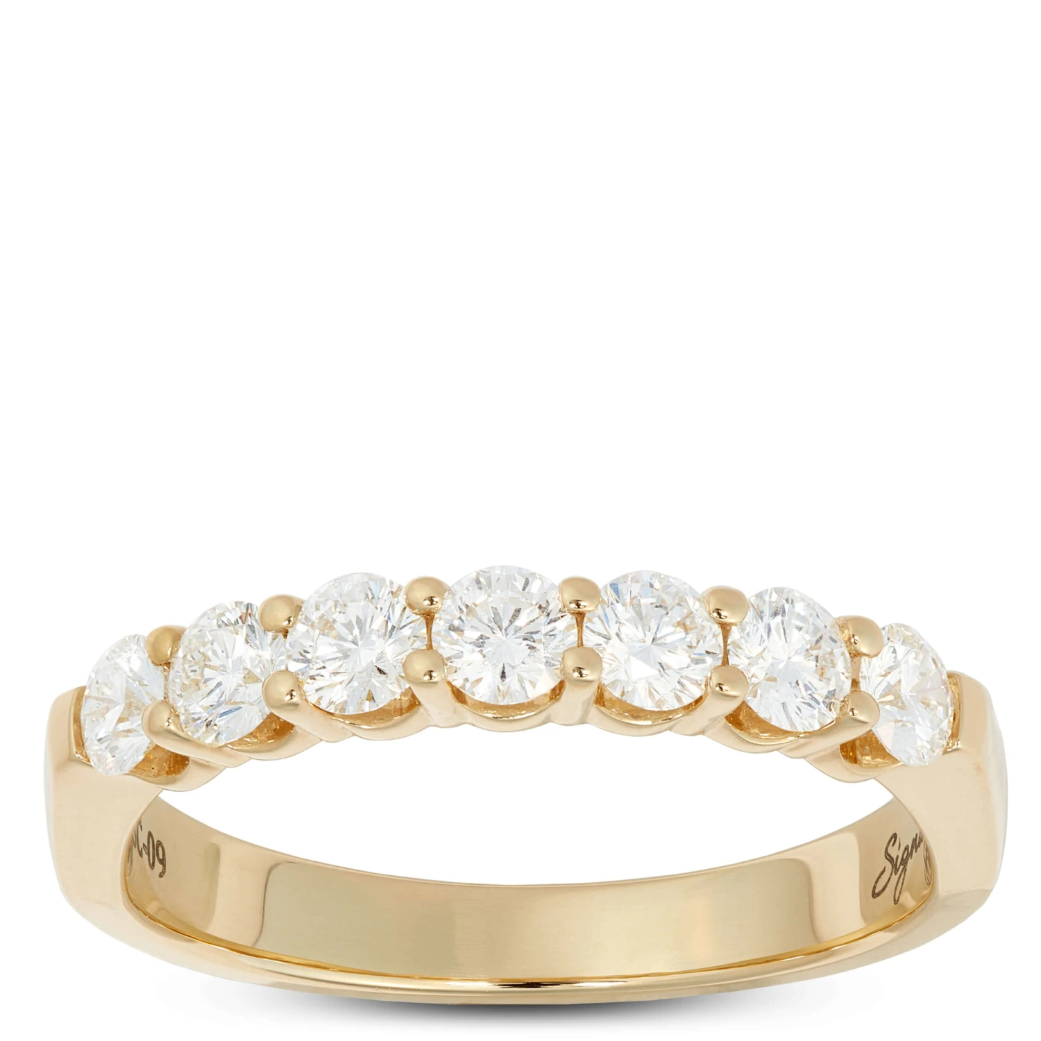 A stunning diamond anniversary band worthy of a lifetime of love. Seven radiant round-cut diamonds sparkle in 18k yellow gold for a timeless, elegant and unforgettable ring made to celebrate all the magical moments you’ll spend together.