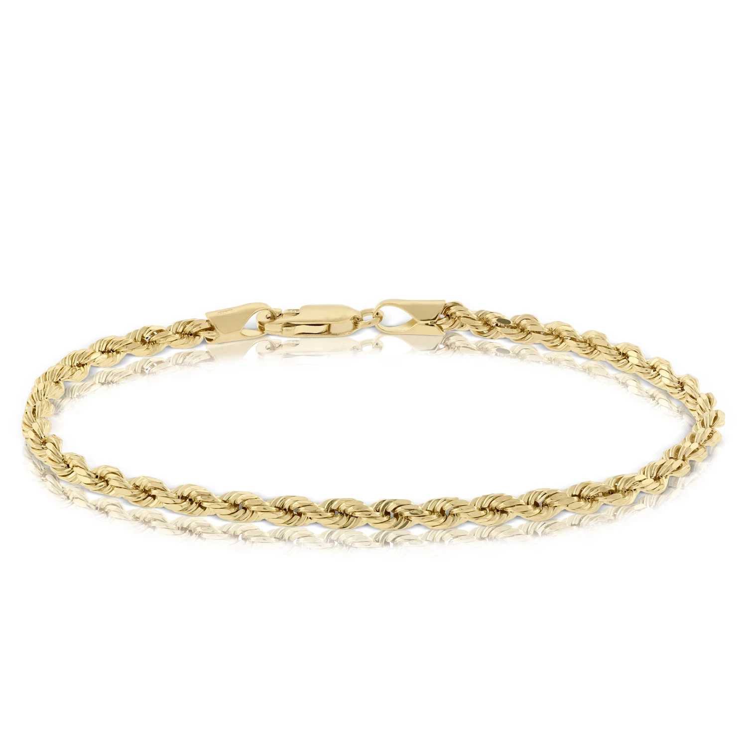 Diamond cut for extra sparkle, this 3.3 millimeter wide rope chain bracelet is a glittery choice that works with any outfit.