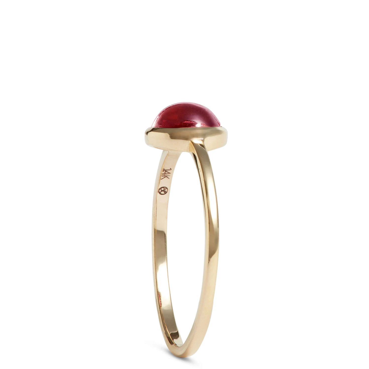 Punch up your color game with a stunningly vibrant round tourmaline gemstone that dances with the light in shades of pink to regal red. The center stone is bezel set in 14k yellow gold for everyday wearability and durability. As Part of our Lisa Bridge Collection, this piece was designed by Lisa and inspired by the star mural painted in her newborn daughter’s room. It’s a reminder to aim high and never stop nurturing your sense of wonder.