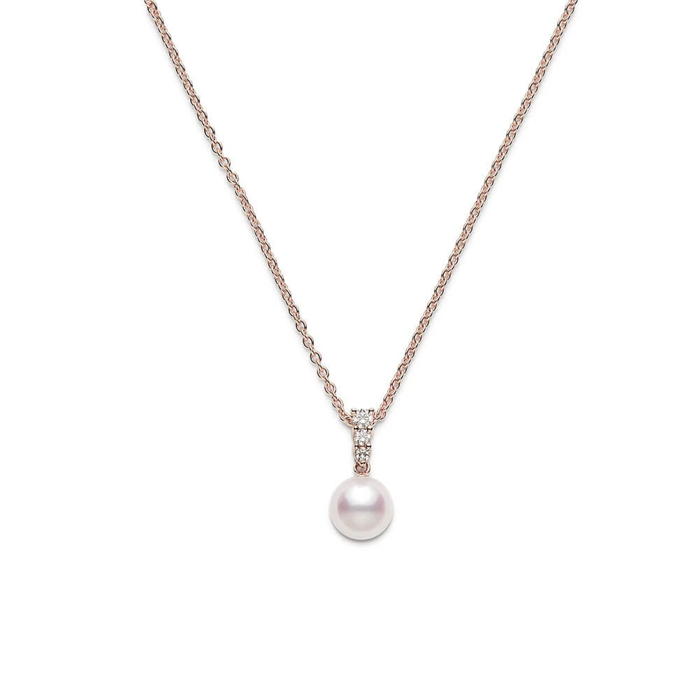 Graduated diamonds lead down to a lustrous cultured Akoya pearl.