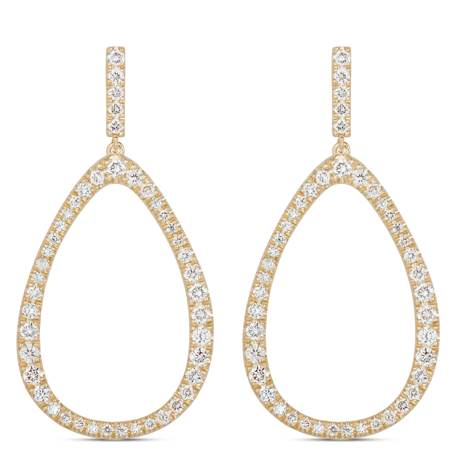 Here’s a pair of incredibly elegant diamond earrings set in classically beautiful 14k yellow gold. With .90 carat weight in shimmering diamonds, these are an exceptionally crafted open pair shape that will catch the light from every angle. They are versatile enough to suit your unique style no matter the occasion.