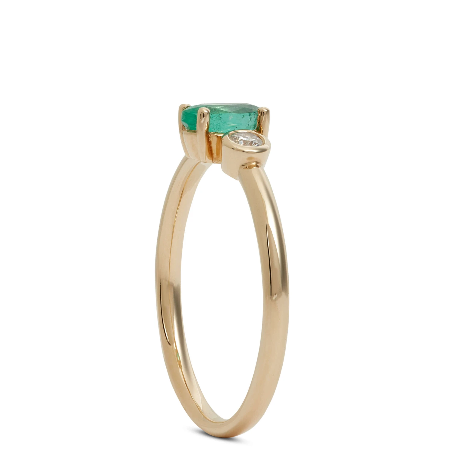 With a perfect mix of classic and contemporary, our oval cut emerald ring is expertly crafted for everyday style. The prong setting showcases the vibrant green emerald while a bezel-set round cut diamonds add a tasteful pop of sparkle. Set in 14k yellow gold, this sleek ring is meant to be worn and loved for years to come.