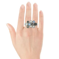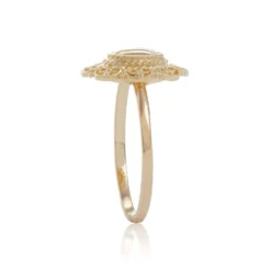 Channel celestial power with the Crescent Moon Beaded Ring. Hand-finished in sterling silver, this piece features a horizontal crescent moon set at an angle on the ring shank. The inside of the moon includes sparkling clear cubic zirconia surrounded by beaded edging. Large beading features all the way around the ring shank for added detailing. Wear this silver crescent moon ring as a symbol of spirituality, mysticism and powerful feminine energy.