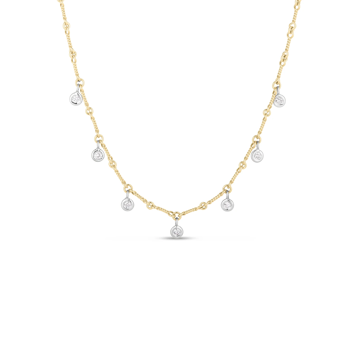 The Dog Bone Diamond Necklace from the Diamonds by the Inch By Roberto Coin IS absolutely stunning and unique. The Necklace features brilliant diamonds set into 18K yellow gold and white gold.