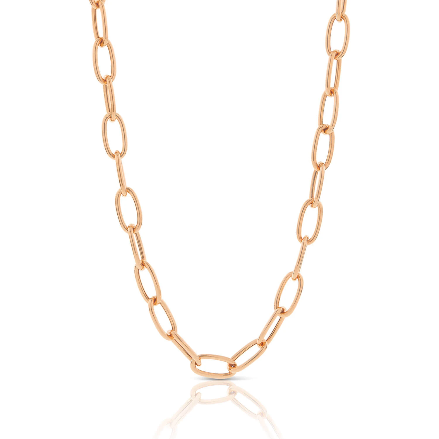 A stylish paperclip style chain can be the perfect stand alone necklace, or add a hint of warmth to a layered look. The smooth oval links add a gentle elegance to this chain’s design.