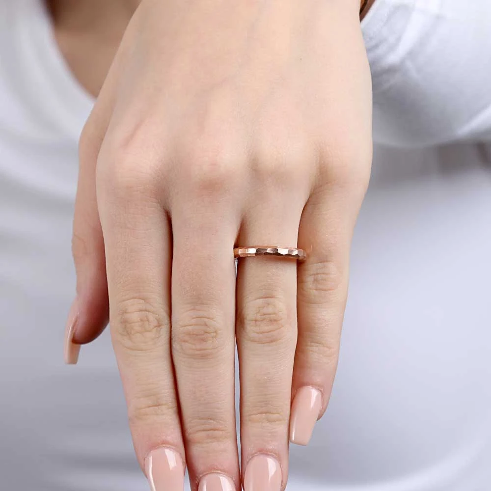 A brushed matte finish over a 3mm wide hammered band gives this ring a casual, yet classy look. Size 7 or 8 only, while available. Due to the unique nature of this design, this ring cannot be sized.