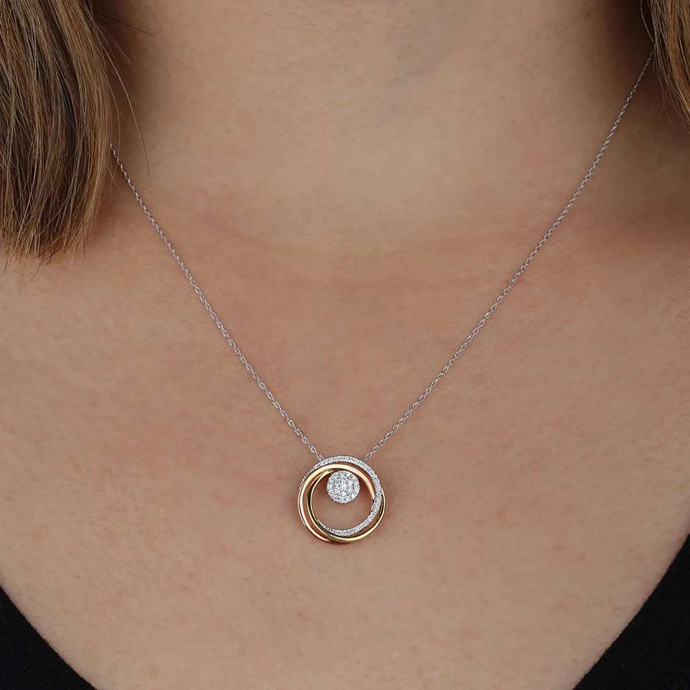 When you’re just not sure you want to be locked into one style, this is the perfect necklace. This convertible circle pendant separates to offer you three different looks with one necklace. Wear this necklace with either the delicate pavé circle center, the swirling circle frame, or both at the same time.
