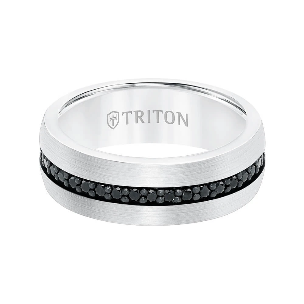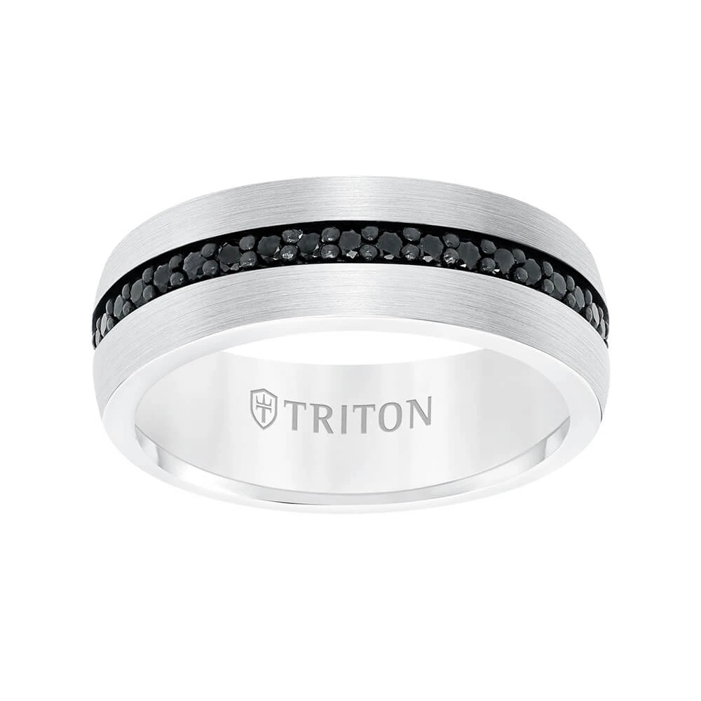 The power of tungsten meets the enduring strength of sapphires in this Triton Stone Collection band.
